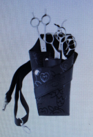 Español: Maletin, soporte o sostenedor de cuero especial para las herramientas de peluqueria