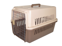 TRANSPORTADORA **65LB** Lg, SIN LLANTAS, NO AVION (LA FOTO ES CON FINES ILUSTRATIVOS). Con una manigueta, base café y techo beige.