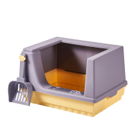Litera lila para gatos con pala.
