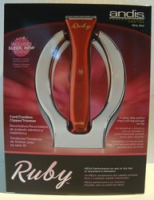 ENGLISH: Andis. Features: Ruby is small in stature, but strong and powerful! NiMH battery packs enough power to run for a full hour. Great for trimming faces, ears and feet. Contoured to fit your hand comfortably. Now with a sleek new stand. 6oz Includes: 5 attachment combs, charging stand, cord charger, clipper oil, and blade brush.