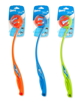 A terrific way to exercise your dog without wearing yourself out is with the Chuckit! Sport Launcher! Throw balls 2 to 3 times farther with this Ball Launcher. Hands-free pickup - no more slobbery balls. Ergonomic rubber handle for the ultimate comfort and control. Made from durable lightweight flexible plastic. Comes in a variety of throwing ranges and ball sizes. Use with standard tennis balls or Chuckit! Compatible balls only. Each Launcher comes with a standard Chuckit! Tennis Ball. Ships in assorted colors. Made in the USA.