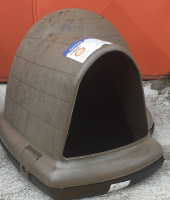 This top-of-the-line igloo shaped doghouse has an extended offset doorway to improve rain resistance and wind protection. Roof ventilation. Heavy duty construction. With Microban antimicrobial.