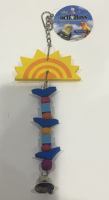 JW Sun Toy Single is a colorful, fun mobile-styled wooden bird toy with strands of hanging wooden beads that will stimulate your pet bird and encourage play. The variety of textures on this bird toy encourage active chewing and condition your pet birds beak. With the bright, nontoxic colors and two bells that jingle, your feathered friend is sure to stay entertained! Oh, and tough metal D rings are added to this bird toy for extra safety so beaks stay protected!