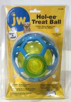 The JW® Hol-ee® Treat Ball is an ingenious, dog treat dispenser and dog toy all rolled up into one. As your dog interacts with the toy the treat tube and inner ball move from side to side dispensing treats. Easy and simple to use and fun and entertaining for long-term play. Helps curbs destructive behaviors by keeping your dog engaged. Features patented honeycomb shape thats easy for dogs to carry. The innovative ball is extremely durable and double-molded to stand up to tough chewers. Tough enough to stand up to constant chewing and can be stretched and tugged. Easy to use. Simply unscrew the cap, place treats or kibble inside of treat tube, and screw cap closed. Made from certified non-toxic durable rubber. Ships in assorted colors.
