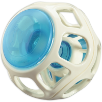 The JW Rockin Treat Ball is a modern ball that rocks, rolls, and slides while dispensing treats for hours of fun. This playful learning activity toy has a tough certified non-toxic nylon frame with creatively styled openings can withstand even the toughest of chewers. The Inner Treat tube holds treats and the open frame makes it easy for dogs to pick up the ball to carry or fetch. Holds up to rugged long-term play. Treats go inside the tube and to add an extra bit of fun. Simply press palms firmly on both ends to twist and loosen, place treats or kibble inside the treat tube, screw the cap closed and youre ready to start the fun with your dog! Product note: Treat Ball Toys for dogs are not designed to be chew toys. Always supervise your pets use of a Treat Ball Toy. Discontinue use if worn, loose, or broken pieces occur.