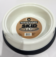 Stop your beloved dog from scooting, sliding, and chasing his bowl across the floor with the JW Pet Skid Stop Bowl. This Skid Stop bowl is made of easy-to-clean, stain-resistant plastic with a heavy-duty rubber rim. This rim makes it nearly impossible for your furry friend to skid or tip its bowl during meal time. Assorted colors.