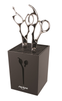 Device to hold one or several scissors vertically to avoid bumps or falls, are available in black, white and green.