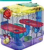 Includes a petting zone, exercise wheel, food dish, and water bottle