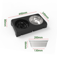 Comedero elevado doble, 1 plato para comer despacio y otro de acero inoxidable.