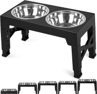 Comedero doble elevado, 5 alturas, color negro con dos platos de acero inoxidable.