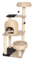 Beautiful, woven rattan cat furniture featuring a high ride perch, dome cubby, and lower level basket bed.