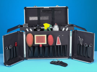 The new Metro Air Force locking tack box Is ideal for groomers. Compact and lightweight with quality hardware throughout. Features include 17 pockets to hold shears, rakes, brushes etc. The interior of the case is designed to , aerosol cans, spray bottles, shampoos and conditioners. Elastic straps securely . There are even compartments for blades and snap-on combs. Very comfortable handle, or you can use the shoulder strap included. and can be locked for extra security. Measures 16.5inches (41.91 cm) x 8 inches (20.32 cm)x 14 inches (35.56 cm). Weighs less than 8 lbs (3.63 Kg).