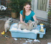 Color Spa Teal Make bath time fun for your pet with the Petmate® Rub-A-Dub Pet Tub. It is ideal for small dogs, cats, or other small pets. Includes rubber traction decals for the floor of the tub to keep the pet from slipping. Microban antimicrobial