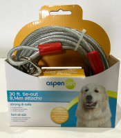 Instructions: (Refer to illustration on back panel for visual reference) Select a site that is level and free of all obstructions. Attach one snap hook to containment device. Use with an Aspen Pet Trolley, Dome Spiral Stake, or attach to itself around a tree. Attach the other snap hook to the dring on your dogs collar or harness. Specifications and features: Snap Hooks, Containment device. Warning: This product is intended for dogs only. keep out of childrens reach. Do not use with choke type your or adjustable collars. Do not use a tieout chain, cable for warning your dog. Never us any tieout chain cable near or around obstacles in which your dog can become entangled. Keep your hands extremities clear of the toeout chain cable in case your dog lunges. Not all dogs can be cabled effectively owner supervision and judgament is requiered. Dogs known to be aggressive in nature should not be left unattended while on a tie out chain cable or trolley. Check the security of your tie out system regulary.