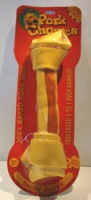 ENGLISH: Pork chomps. 1 count. Horneado. Delicious baked pork skin knotted so your dog can go to workª Lower in fat than pig´s ears and more easily digestible than beef rawhide. Long-lasting knots guaranteed to satisfy your most vigorous chewer. No artificial flavors or preservatives.