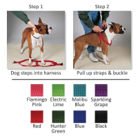 Our Guardian Gear Two-Step Harness goes on in two simple steps with no need to struggle with complicated buckles and straps. With only one quick-release buckle to attach, this harness goes on in a snap! Simply have dog step in, pull up straps and buckle!